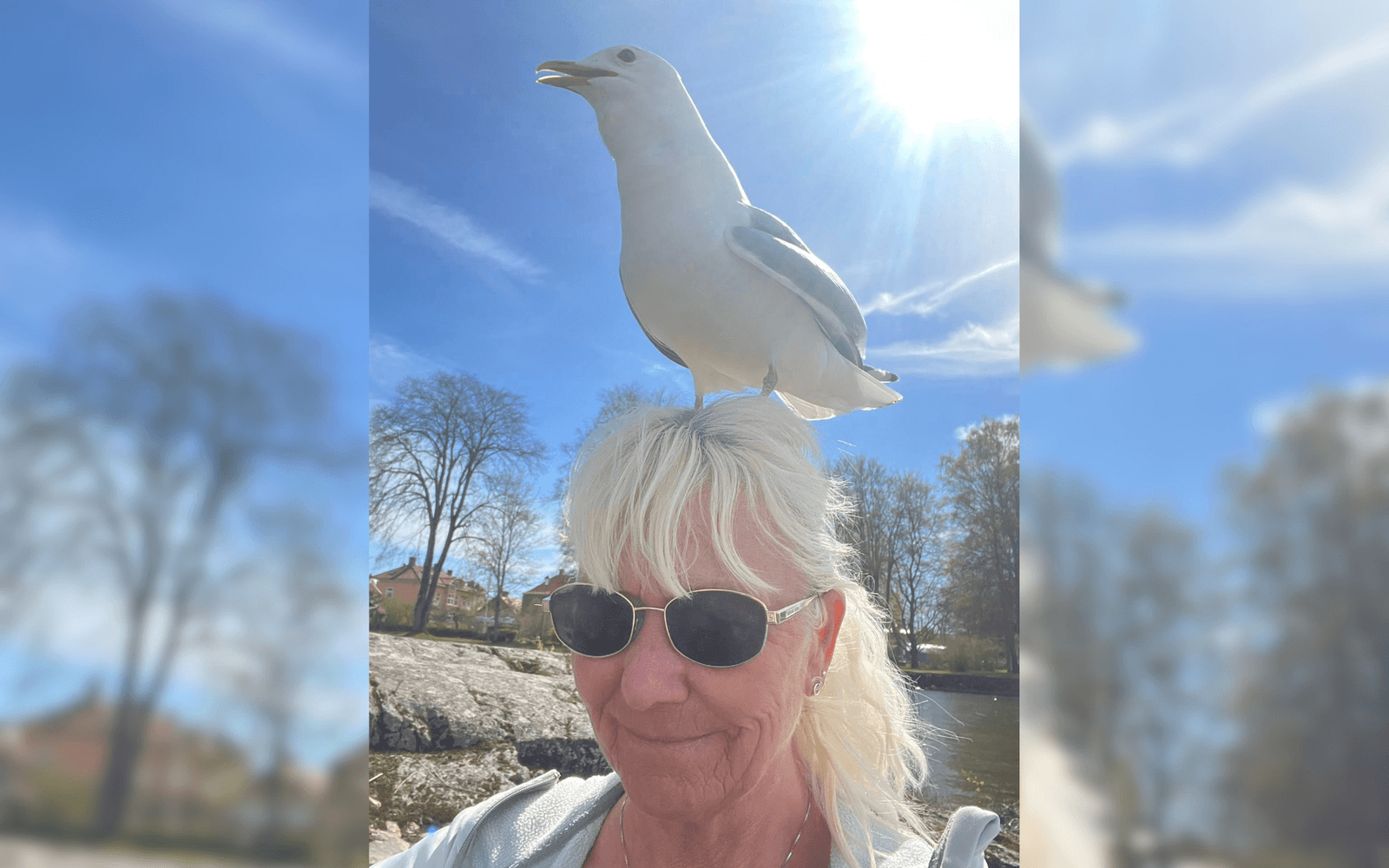 Trots att en fiskmås på huvudet är vardag under sommaren för Anna är det inte lika självklart för de som får syn på ekipaget.