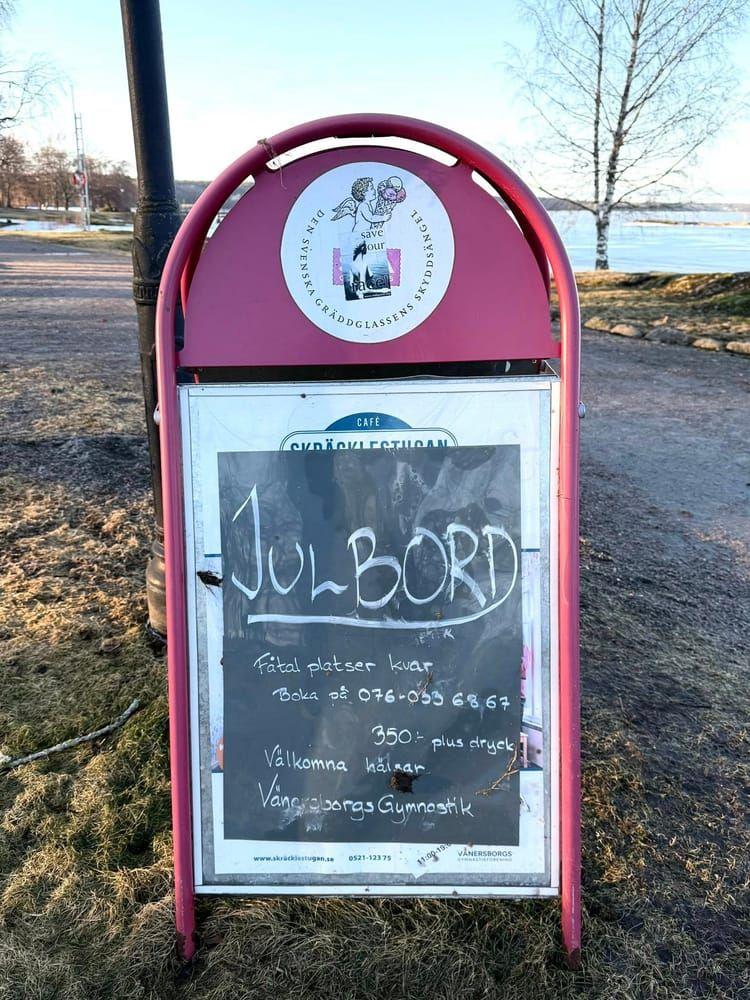 En av bilderna i inlägget visar en skylt som gör reklam för julbord i Skräcklestugan – där det endast ska vara ett ”fåtal platser kvar”.