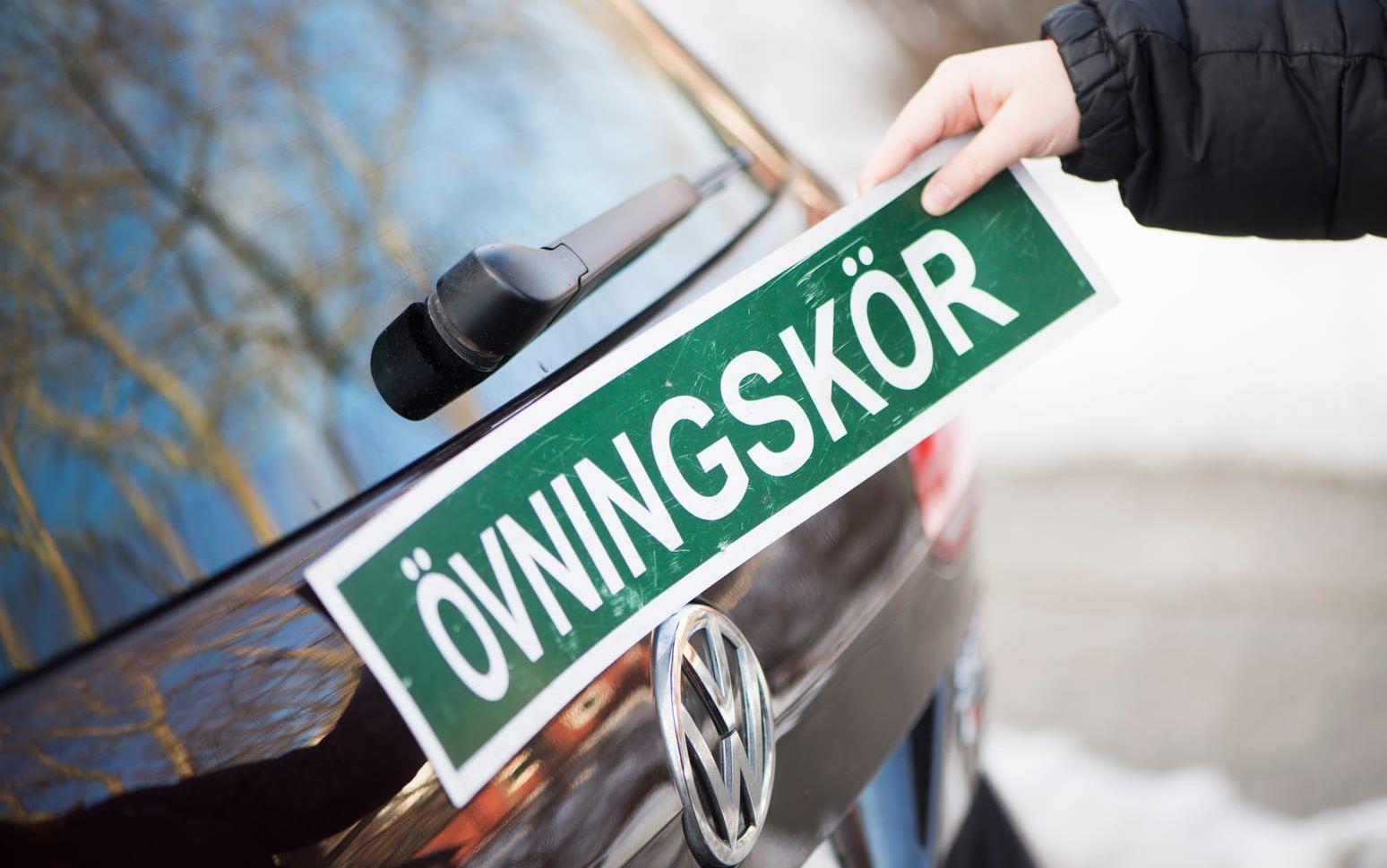 Dottern körde bilen och pappan satt i passagerarsätet. Bilen var korrekt utmärkt med en övningskörningsskylt.
